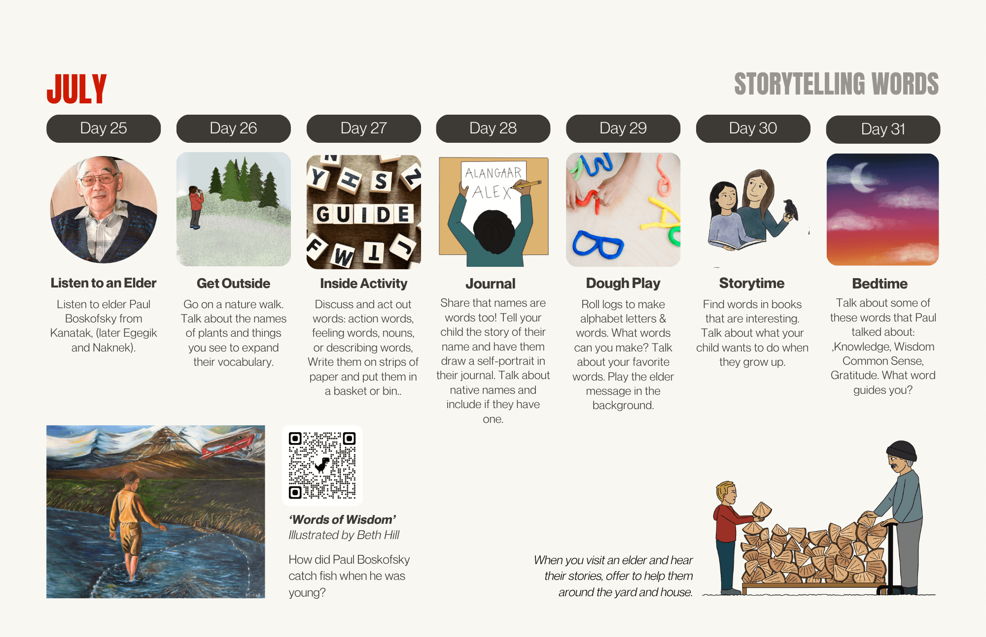 Developed in partnership with elders, cultural knowledge bearers, and community members, the guide blends storytelling, traditional values, and hands-on exploration. Whether harvesting plants, creating seasonal art, or practicing early literacy skills through play, families can adapt activities to their own traditions and environments—making each experience meaningful, culturally relevant, and full of joy.