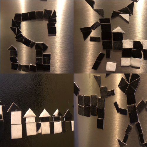 Students review shapes learned, patterns, how to make a rectangle from a square and the properties of a rectangle.