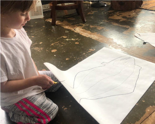 Students learn what a halibut is, where it is harvested, and what halibut feed on, by creating various sizes of halibut.