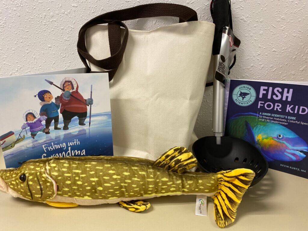 Robust Bag Kit: Each bag includes a plush, a toy (often custom-made), two books (one Alaska relevant fiction and one informational book), and a deck of activity cards on a ring. We have 14 topics available.