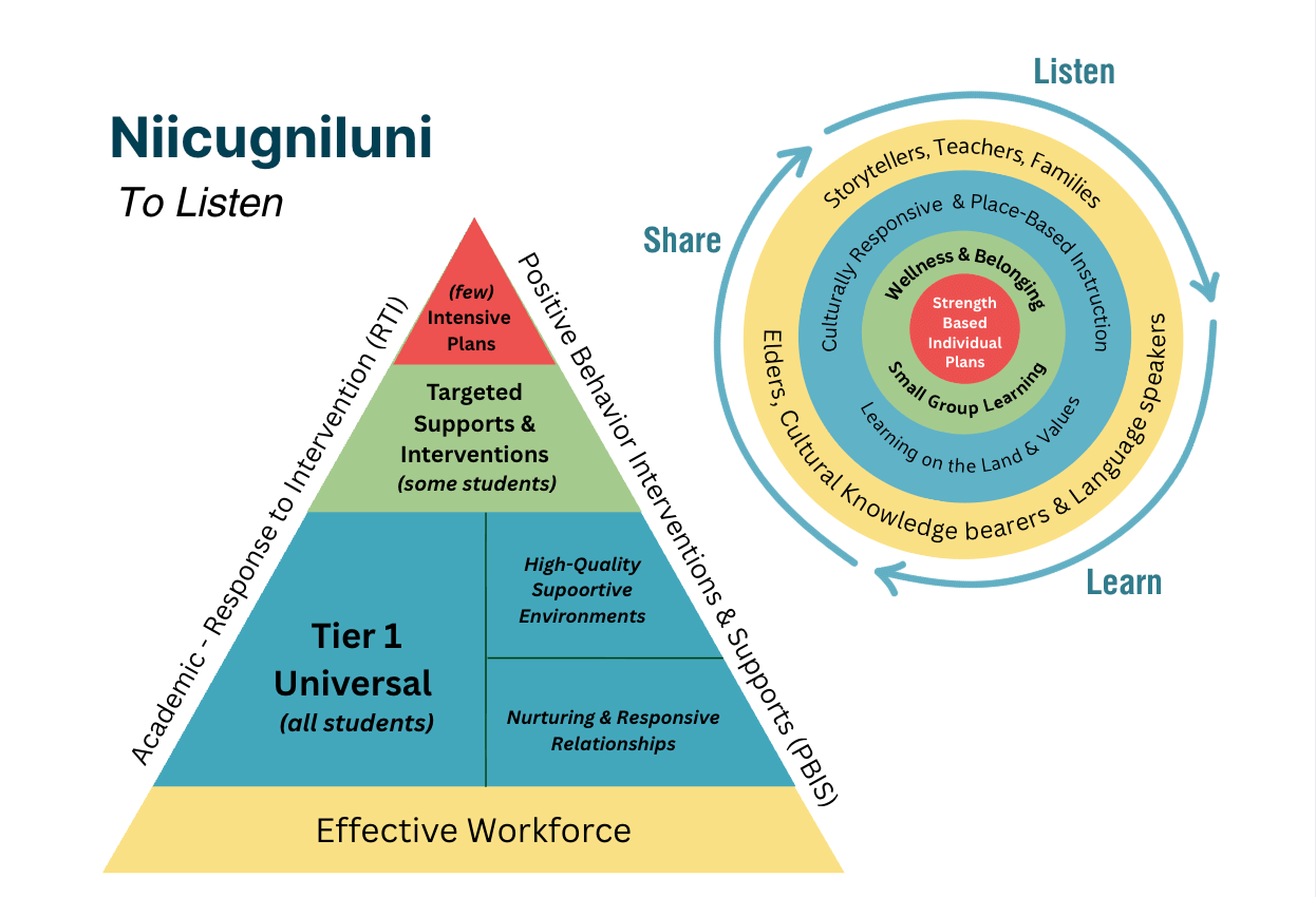 Within this framework, supports increase in response to children’s strengths and needs. Tier 1 provides culturally grounded instruction and environments for all children. Tier 2 adds targeted opportunities and guided practice to strengthen developing skills and expand knowledge. Tier 3 provides individualized planning and coordinated supports with families and specialists. Across all tiers, children remain connected to the same relationships, routines, and community-based learning.